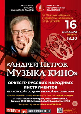 16 декабря в 18-30 Ивановская государственная филармония приглашает слушателей на концертную программу «Андрей Петров. Музыка кино», посвящённую 95-летию со дня рожд...