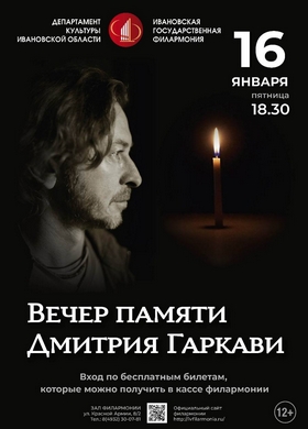 Ивановская государственная филармония приглашает на вечер памяти Дмитрия Гаркави — талантливого музыканта, поэта и человека, чьё творчество и душевная щедрость вдохн...