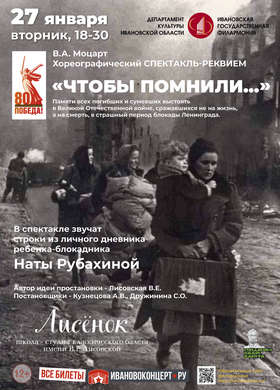 27 января Ивановская государственная филармония приглашает на хореографический спектакль – реквием "Чтобы помнили...", посвященный памяти всех погибших и сумевших вы...