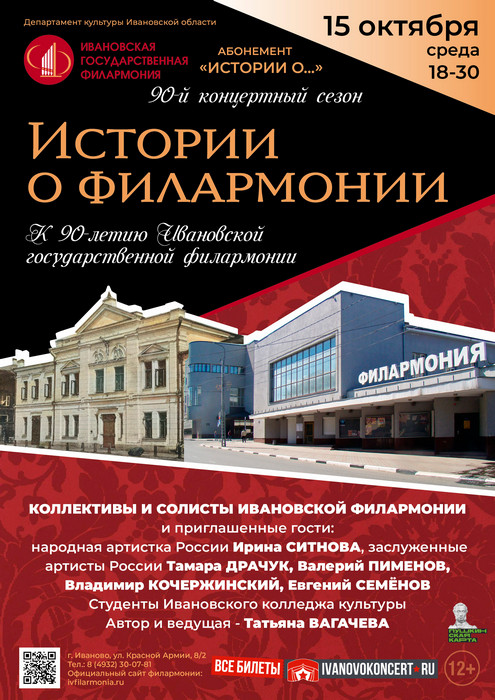 Программа посвящена 90-летию Ивановской государственной филармонии, чья сцена считается по праву самой старинной концертной площадкой города Иваново.