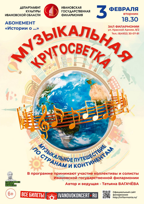 3 февраля в 18.30 Ивановская филармония приглашает совершить музыкально кругосветное путешествие по странам и континентам!