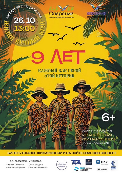 Студия творческого развития «Оперение» Иваново празднует свой девятый день рождения! 26 октября в 13:00 на сцене Ивановской Филармонии состоится праздничный концерт.