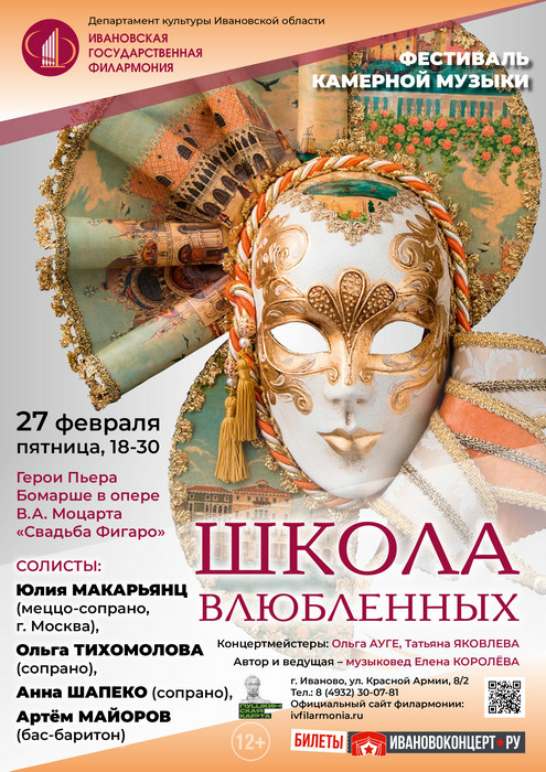 27 февраля 18.30 Ивановская государственная филармония представит героев Пьера Бомарше в опере В.А. Моцарта «Свадьба Фигаро» в концертной программе «Школа влюблённых».
