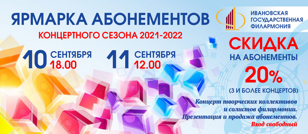 Ивановская государственная филармония приглашает всех любителей музыки на продажу абонементов 86-го концертного сезона 2021-2022 гг., которая состоится в фойе 2 этажа филармонии.